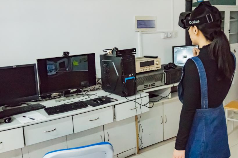 信息可视化实验室是“教育部工程研究中心”和“国家发改委工程研究中心”的一部分,主要研究“矿山安全信息化”的相关内容,结合国家863计划项目,重点对矿井内的火灾和水灾基于物理规律的演化进行研究,开发基于虚拟现实技术的矿井灾害逃生培训系统,研究科学计算的可视化技术、人机交互技术、虚拟仿真实验、VR版课程开发等。实验室的设备主要有:主动3D投影机及环型大屏幕、Oculus Rift头盔显示器、HTC Vive Pro头盔显示器、微软Kinect人体动作捕捉器、Omni VR跑步机、G4六自由度传感器、数据手套、Leap Motion、高端图形工作站等。实验室是面向科学研究,本科生创新创业项目、竞赛活动、毕业设计、虚拟仿真实验,硕士生和博士生相关课程教学、公司产品等的综合性实验室。