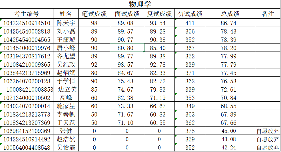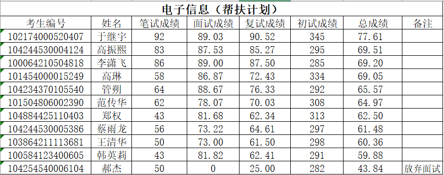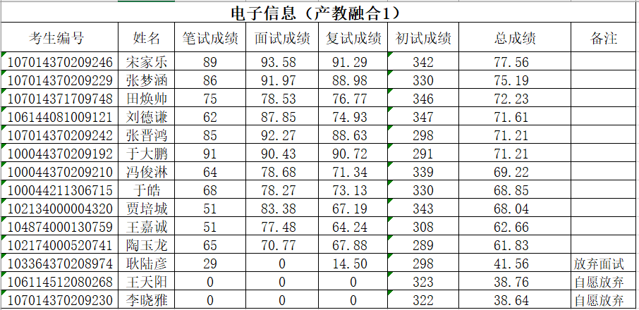 根据《bevictor伟德官网2024年硕士研究生复试录取工作方案》和《bevictor伟德官网2024年硕士研究生调剂复试录取工作方案》的部署,在确保安全性、公平性和科学性的基础上,结合公司实际,本着公平、公正、公开、客观的原则,严格组织程序,对报考公司的2024年调剂研究生进行了复试,现将参加调剂考生的复试成绩予以公示(说明:同一专业(方向)按总成绩从高分到低分排序,备注“自愿放弃”为未参加复试考生,备注“放弃面试”为仅参加复试笔试考生)。