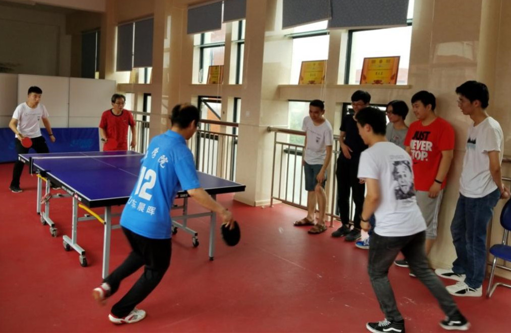 师生乒乓球比赛。