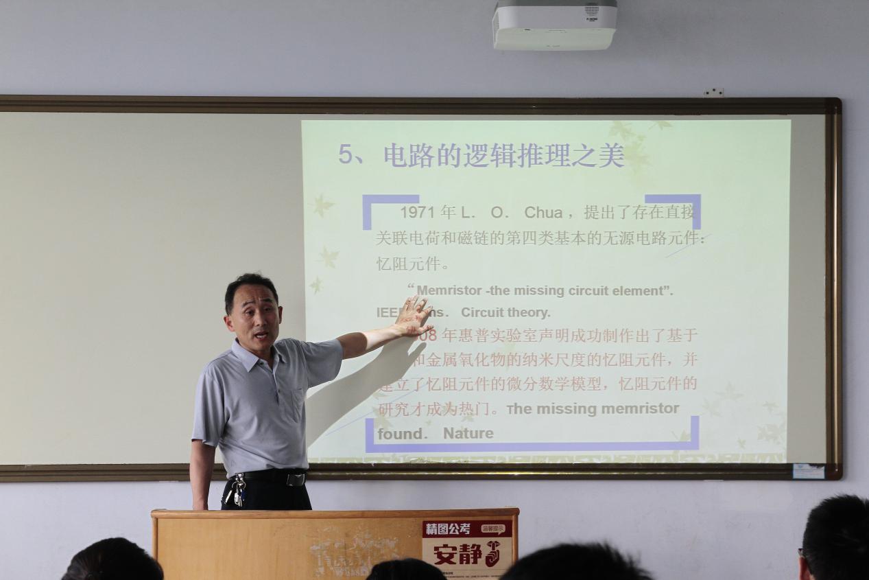 王立华副教授为电子信息科学与技术专业毕业生重温第一堂电路课。