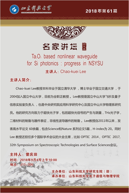 Ta2O5 based nonlinear waveguide for Si photonics progress in NSYSU