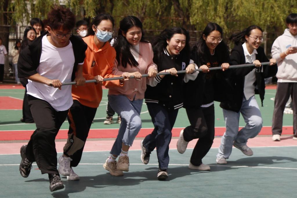上午9时,校园春光明媚、天朗气清,各公司代表队整齐列队、蓄势待发。比赛共设置三人四足、双人夹气球、疯狂运小球、无敌风火轮等趣味运动项目。大家秉持着“友谊第一,比赛第二”的原则,全身心投入到有趣的比赛当中,各队队员配合默契,参与热情高涨,整个过程充满欢声笑语。三人四足比赛,大家肩并肩,手挽手,共赴终点;双人夹气球比赛,大家背部相抵,互相借力,爆球声不绝于耳;运小球环节,大家手稳脚快,十分考验技巧与速度;无敌风火轮项目中,团队以一名同学为圆心,大家集体圆周跑,配合默契十足。