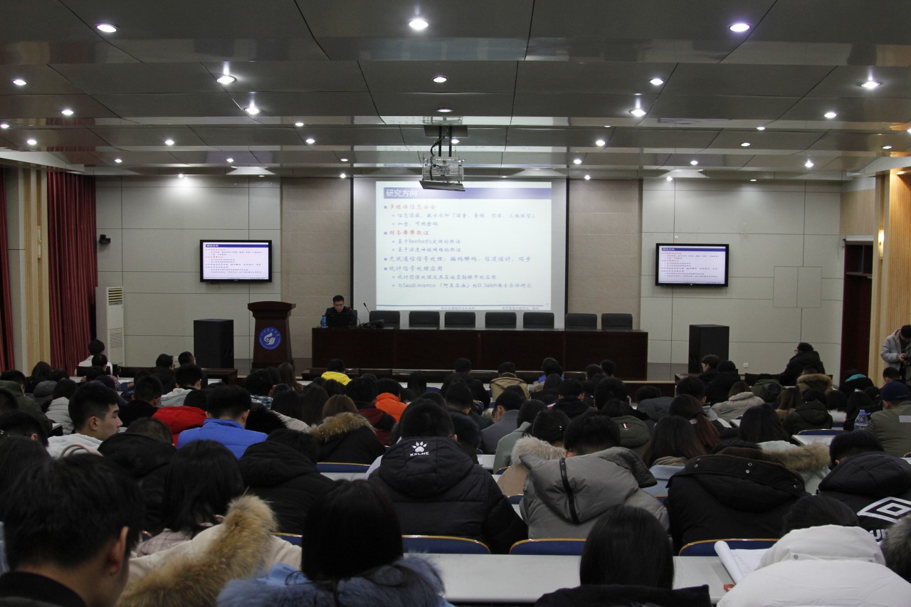 颜斌教授首先结合自身的学习工作经历简要介绍了课题组的研究方向,主要为多媒体信息安全和财务舞弊取证。该报告从数字水印、数字水印如何嵌入以及提取、如何保护版权和数字水印典型应用这几方面重点介绍了数字水印技术。随后讲述了通信安全以及私密分享问题,使同学们对多媒体信息安全有了一个更清楚深刻的了解。最后针对研究生课题的研究以及论文的阅读和写作做了一定的分析探讨并为大家提出了有效的建议。