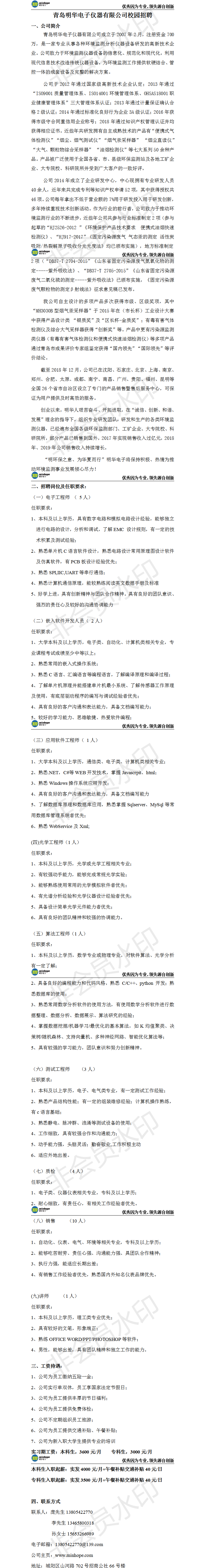 招聘信息017:青岛明华电子仪器有限公司校园招聘