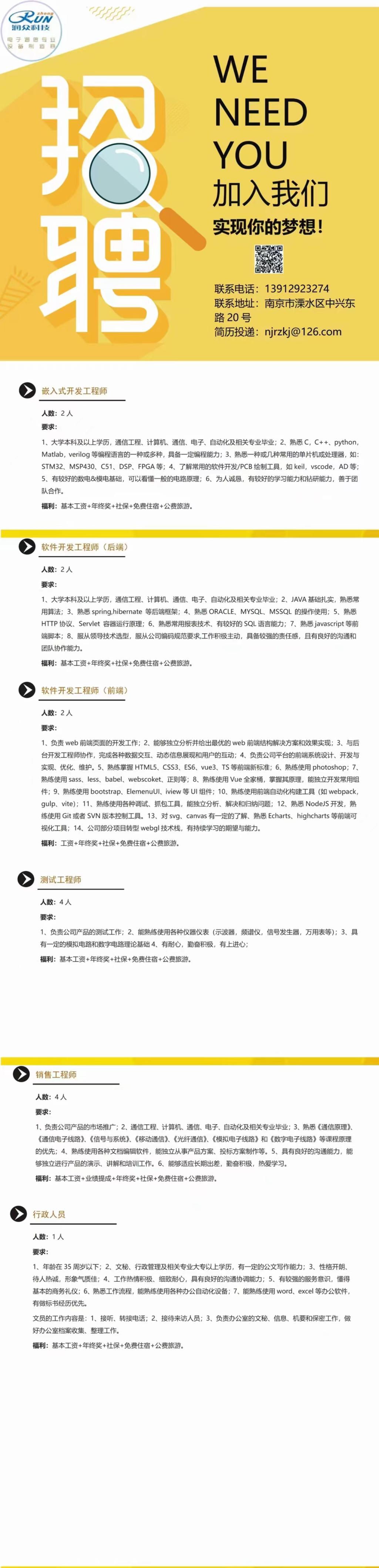 招聘信息028:润众科技
